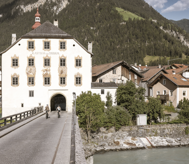 Erfahre bei einem gemütlichen Spaziergang mehr über die historischen Sehenswürdigkeiten und die besonderen Gebäude von Pfunds, die mit faszinierenden Geschichten verbunden sind.