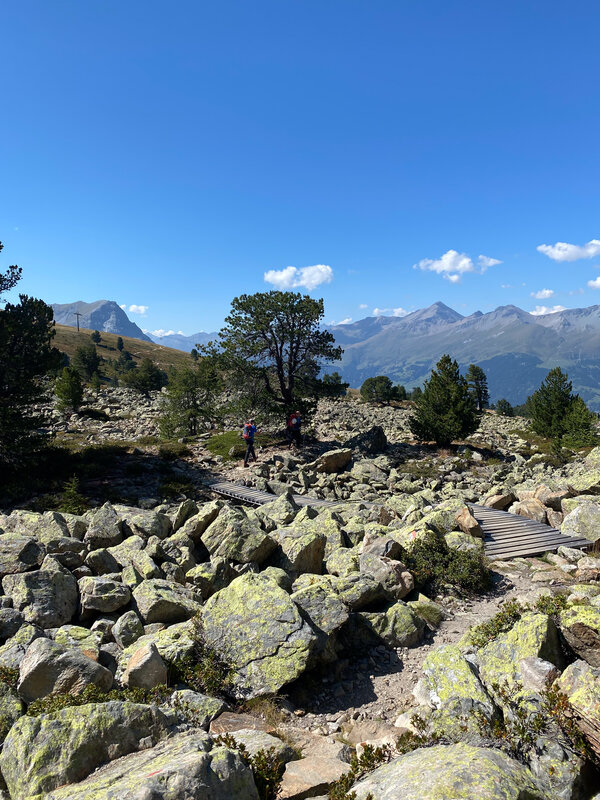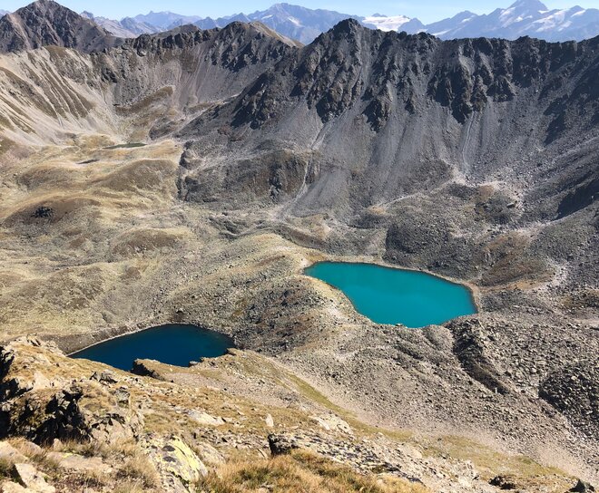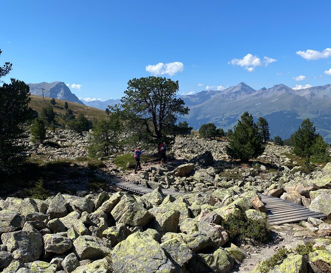 Auf einer der schönsten Wanderungen in diesem Gebiet begeben wir uns auf einen besonderen Weg über unzählige riesige Steine führt - dem großen Blockkargletscher Richtung Mataunkopf. Nach Auffahrt mit der Seilbahn geht es zwischen Almrosenstauden und über Grasflechen bis zum "großen Stein". Von dort führt ein letzter Aufstieg auf den letzten Hügel vor den Goldseen. Der natürliche Trinkwasserspeicher von Nauders - die Goldseen, welche hier eingebettet in einer vegetationsarmen und geröllübersäten Bergkessel liegen, beeindrucken mit ihrem kristallklaren Wasser in welchem sich die mächtigen umliegenden Felskolosse Berkastelspitze, Plamorterspitze, Ganderbildspitze und Mataunkopf spiegeln. Nach einem kleinen Rundgang und einer Pause geht es weiter zum Mataunkopf und über denselben Weg zurück zur Bergstation der Bergkastelseilbahn. Auch das beeindruckende Bergpanorama vom Gipfel des Mataunkopfes aus belohnt uns mit einem Gipfelerlebnis der besonderen Art.