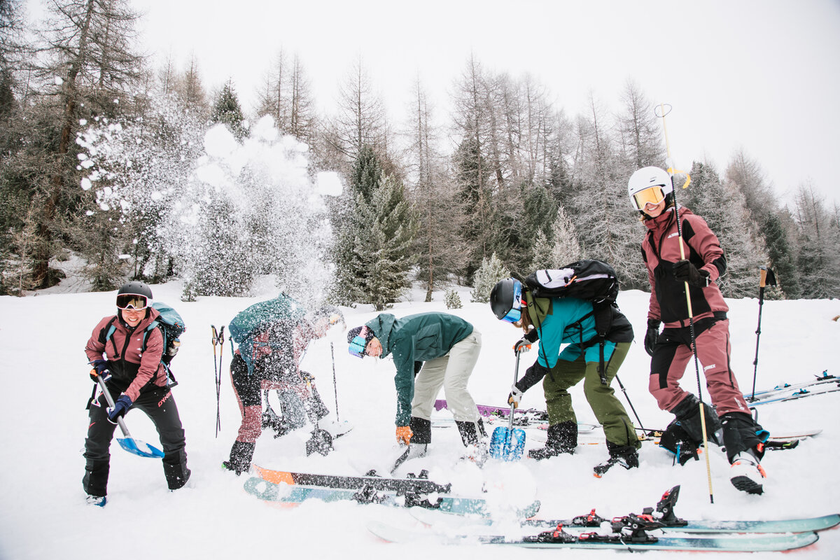 • Safety first: Umfassende Einweisung in Lawinenkunde und den Umgang mit Sicherheitsausrüstung. Du lernst, wie du sicher durch den Tiefschnee kommst und was es alles zu beachten gilt.