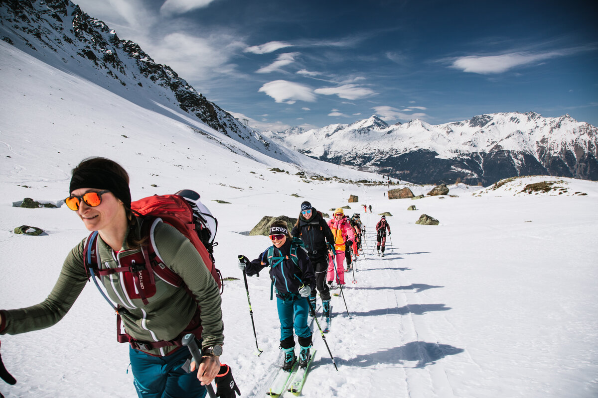 • Professionelles Coaching: Unsere erfahrenen Berg- und Skiführer*innen vermitteln dir alle wichtigen Skills – von der richtigen Aufstiegstechnik bis zur sicheren Abfahrt im Tiefschnee.