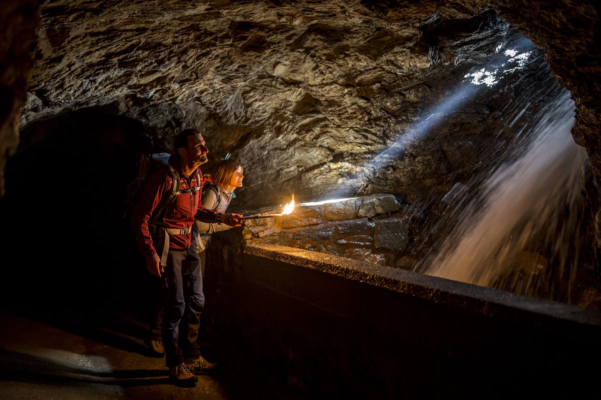 Guided hike with our hiking guide through an old irrigation tunnel to the Gallruthalm. The return route leads along the panoramic trail from the Gallruthalm to the Falkaunsalm.